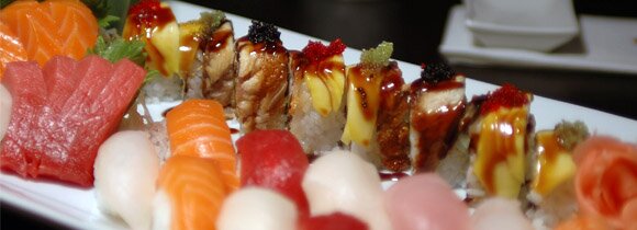2 pcs tuna, 2 pcs salmon, 2 pcs yellowtail, whitefish, eel, shrimp, tobiko and 8 pcs spicy tuna roll